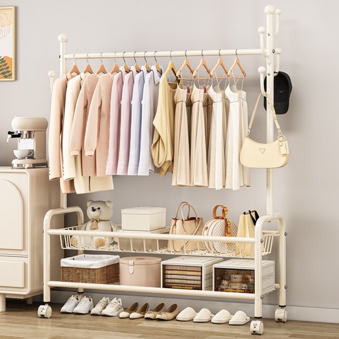 • 강력한 철제 프레임: 고강도 철제 소재를 사용하여 내구성이 뛰어나고 많은 양의 옷을 걸어도 휘어짐 걱정이 적어요.